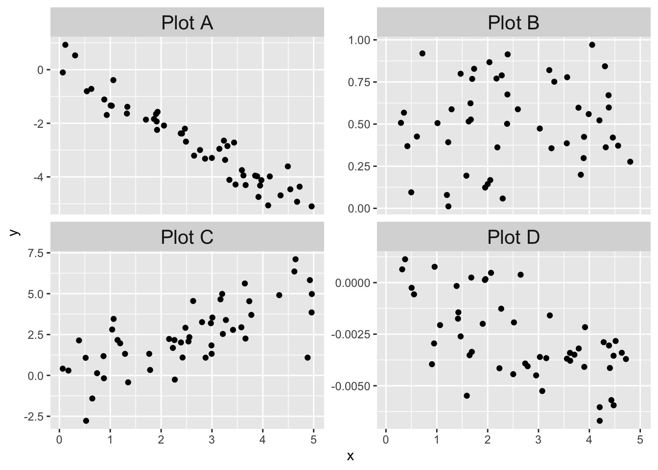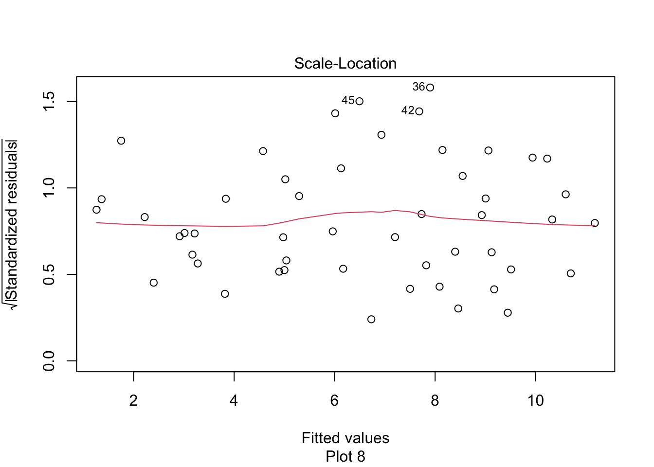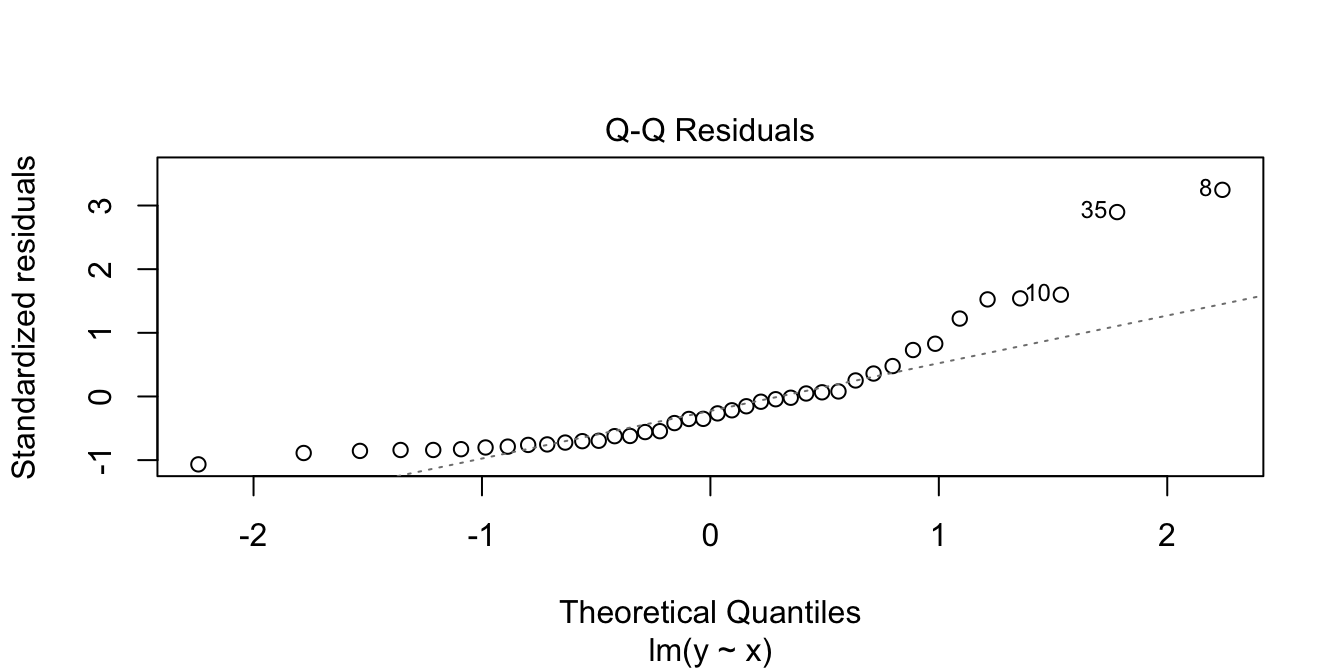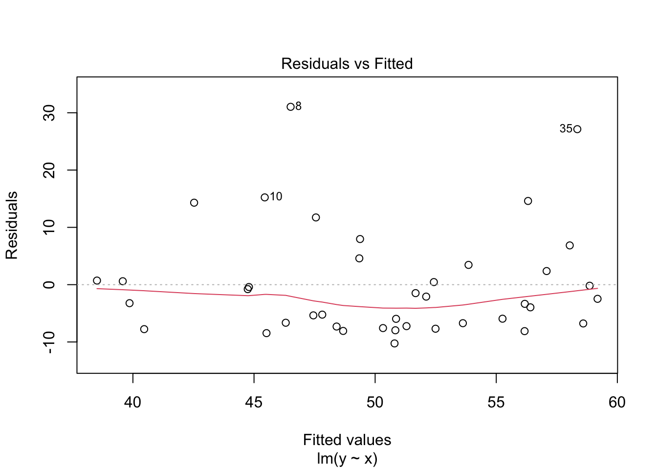 - The mean value of \(x\) is 10. Model \(y\) on \(x\) and compute the residual when \(x = 10\). Replicate this and verify that the standard deviation of the residuals when \(x = 10\) is about 2.9.