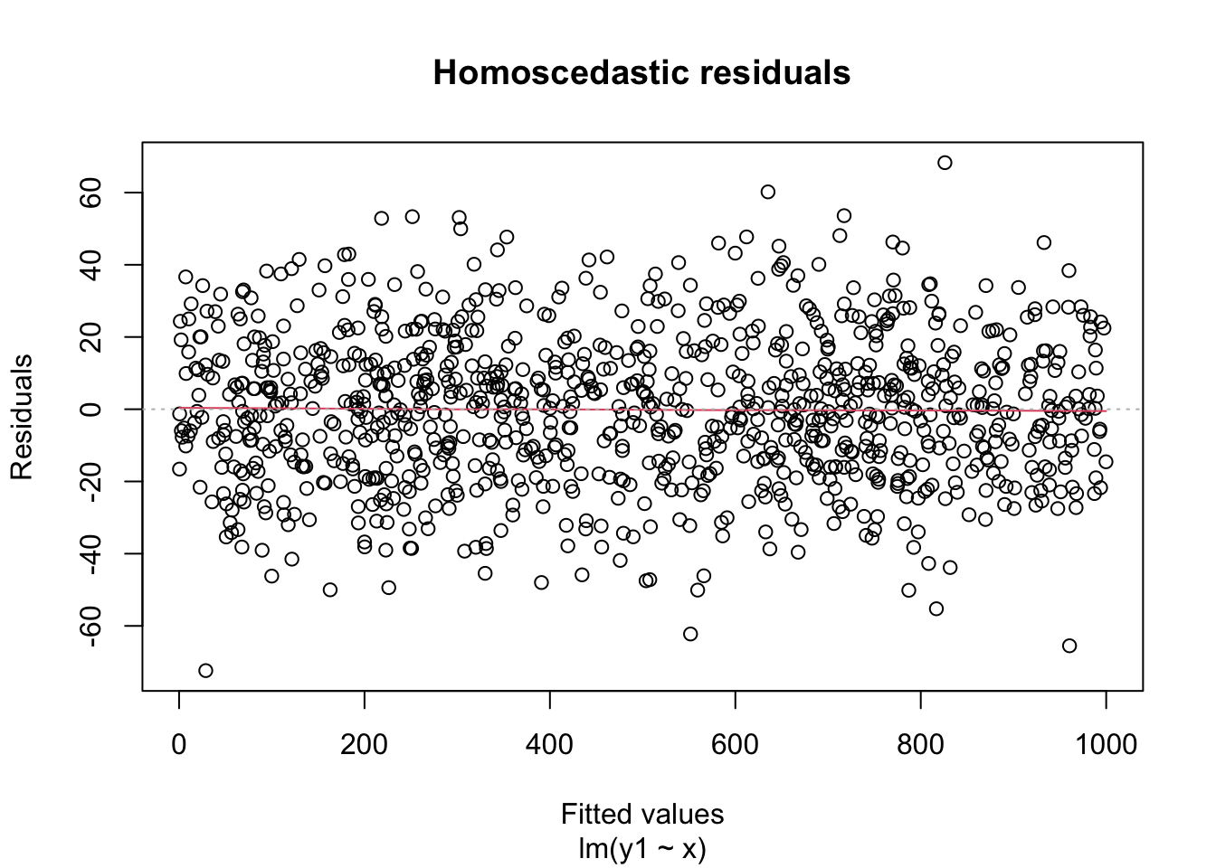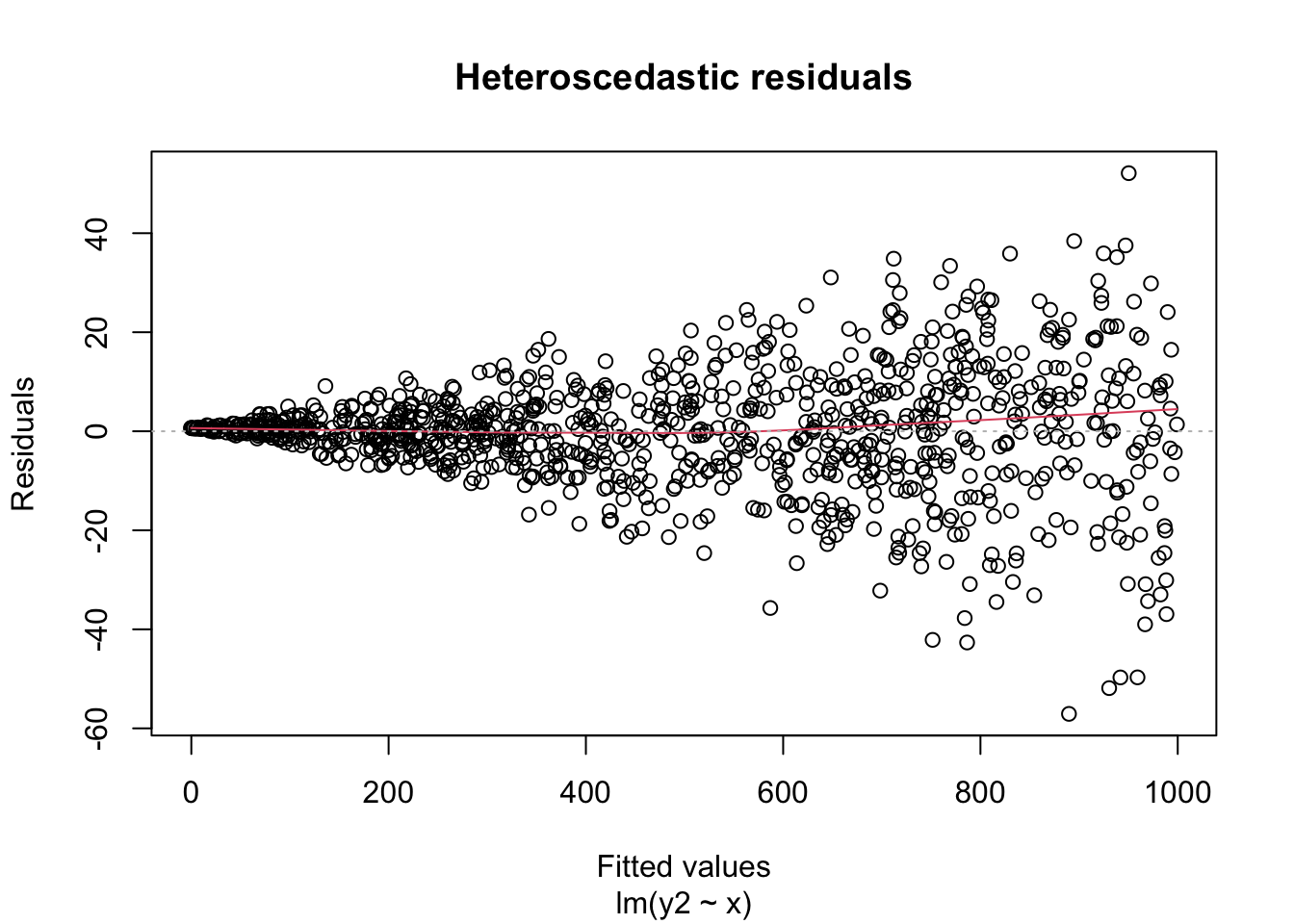 - Repeat part (b) for the same model and data, but compute the residual when \(x = 1\) and verify that the standard deviation of the residuals when \(x = 1\) is about 2.7.