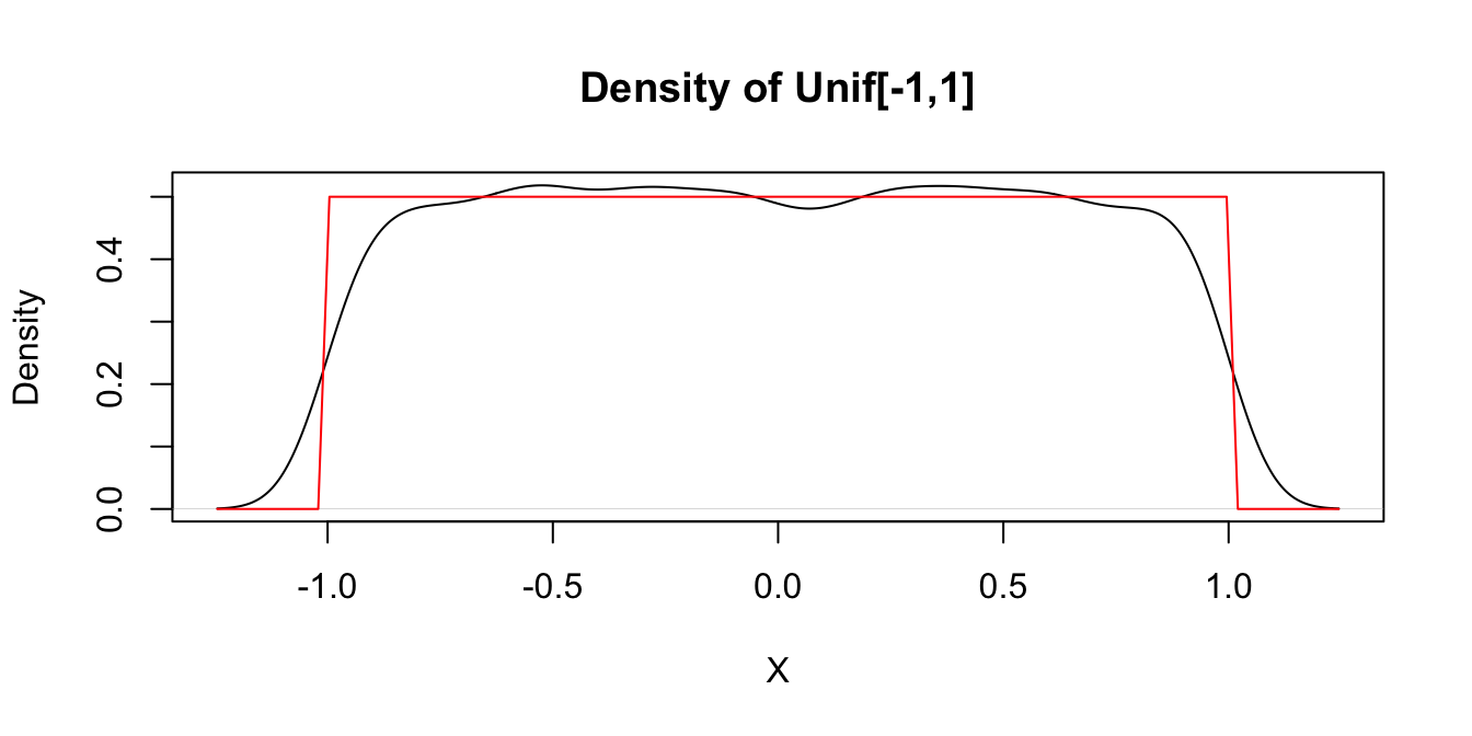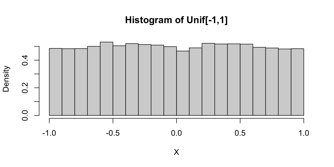 - Let \(X_1, \ldots, X_n\) be independent uniform random variables on \([-1, 1]\). The median is 0 and \(f(0) = 1/2\). Show that for large \(n\), the median of \(X_1, \ldots, X_n\) is approximately normal with mean 0 and standard deviation \(1/\sqrt{n}\).