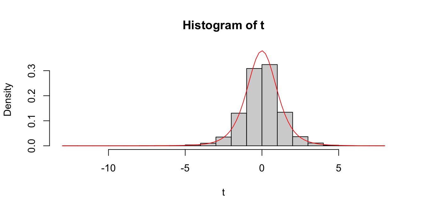 You can sample from such a \(t\) random variable using rt(N, df = 1)