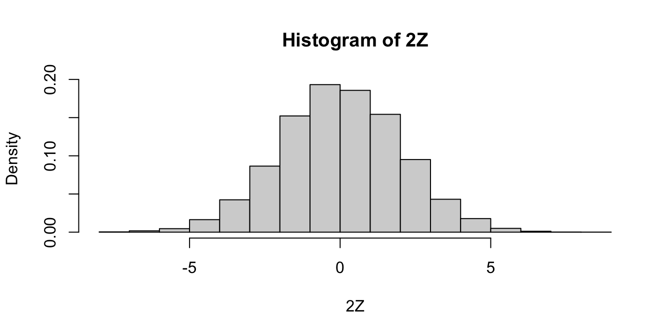 Let \(Z\) be a normal random variable with mean 0 and standard deviation 1. Estimate the mean and standard deviation of \(Z\).