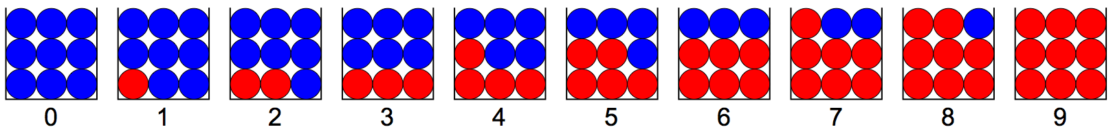 Suppose that you have 10 boxes, numbered 0-9. Box \(i\) contains \(i\) red marbles and \(9 - i\) blue marbles.